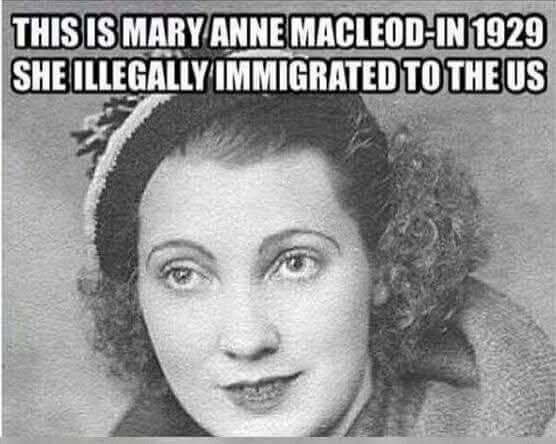( مارى آن ماكلويد)  والدة دونالد ترامب، خادمة أسكتلندية من أسرة فقيرة ،مهاجرة إلى أمريكا  وعملت خادمة من 1930 إلى أن إلتقت بزوجها فريد ترامب سنة 1934 وهو أيضاً إبن لأبوين ألمانيين مهاجرين .. !!